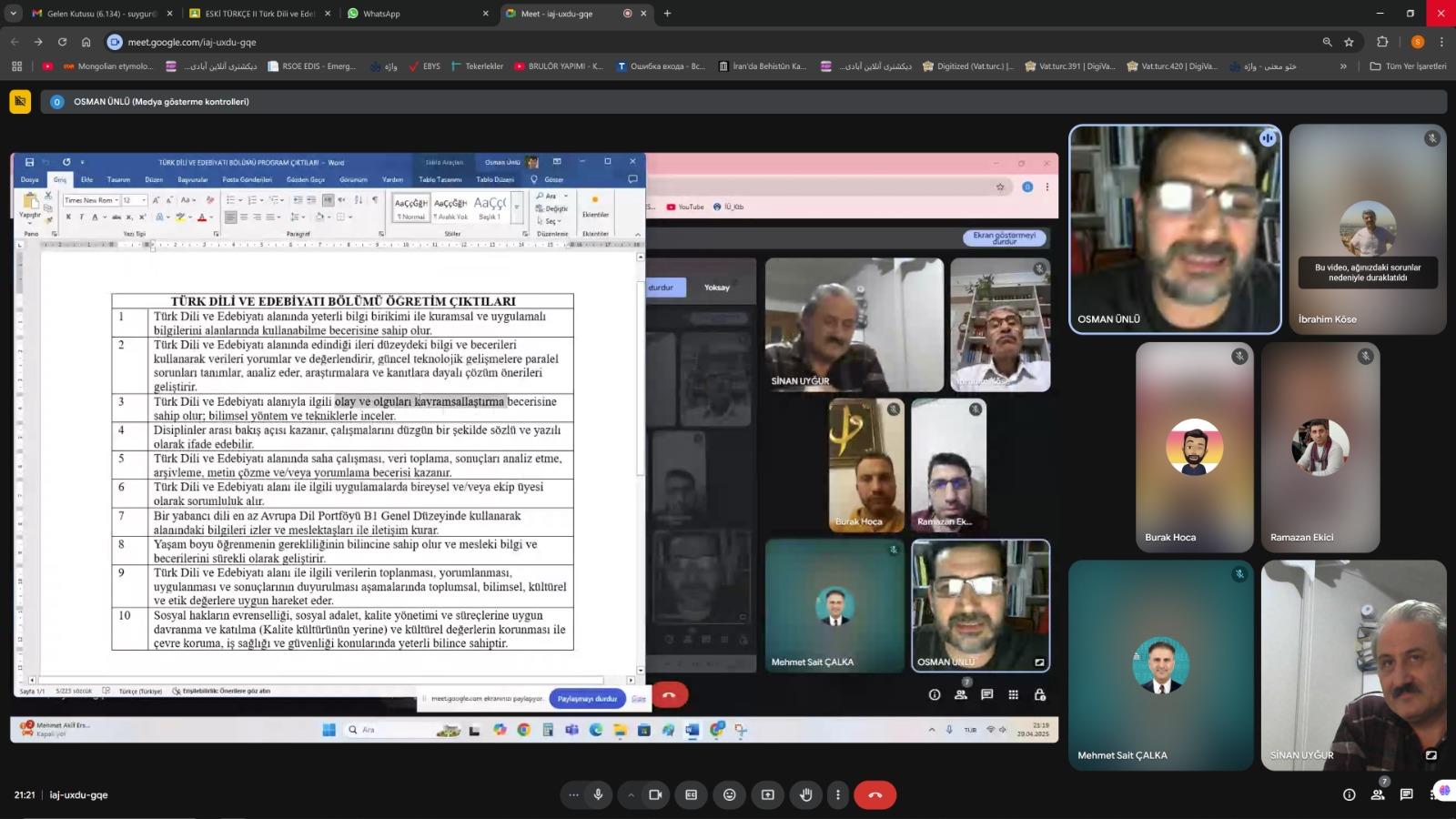 Bölümümüz FEDEK Akreditasyon çalışmaları kapsamında yapılan dış paydaş toplantısı Recep Tayyip Erdoğan Üniversitesi Fen Edebiyat Fakültesi Türk Dili ve Edebiyatı Bölümünden Prof. Dr. Mehmet Sait ÇALKA, Bandırma İlçe Milli Eğitim Müdür Yardımcılarından Burak ATA, Bandırma Ali Öztaylan Anadolu İmam Hatip Lisesi Türk Dili ve Edebiyatı öğretmenlerinden Ramazan EKİCİ, Bandırma’nın önemli simalarından şair-yazar İbrahim KÖSE, Bölüm Başkanımız Prof. Dr. Sinan UYĞUR ile FEDEK Koordinatörümüz Prof. Dr. Osman ÜNLÜ’nün katılımları ile gerçekleştirildi. Toplantı kapsamında akreditasyon sürecinden bahsedildi ve geçmişten günümüze eğitim sürecindeki değişiklikler tartışılarak muhtemel iyileştirmeler üzerine fikir alışverişinde bulunuldu. Bölümümüzün yeni öğretim çıktıları ele alınarak bunların kabulüne karar verildi.
