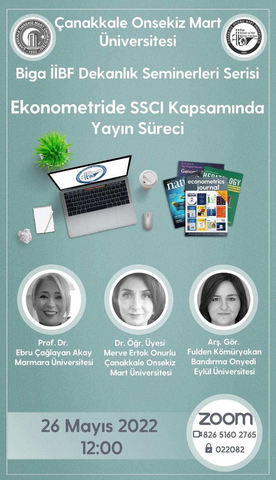 Bölümümüz öğretim üyelerinden Arş. Gör. Fulden Kömüryakan, Çanakkale Onsekiz Mart Üniversitesi İktisadi ve İdari Bilimler Fakültesi tarafından düzenlenen Biga İİBF Dekanlık Seminerleri Serisi kapsamında gerçekleştirilen “Ekonometride SSCI Kapsamında Yayın Süreci” başlıklı seminerde konuşmacı olarak yer almıştır.