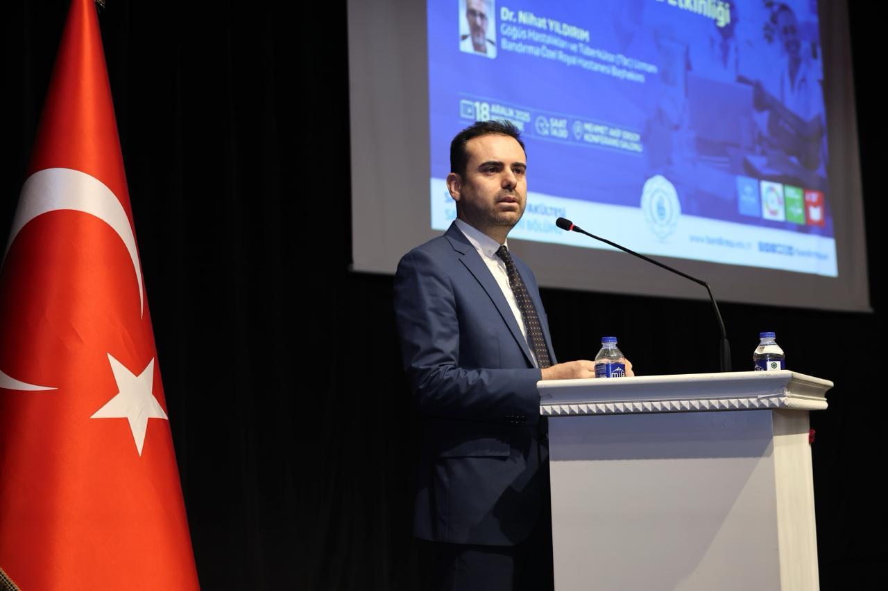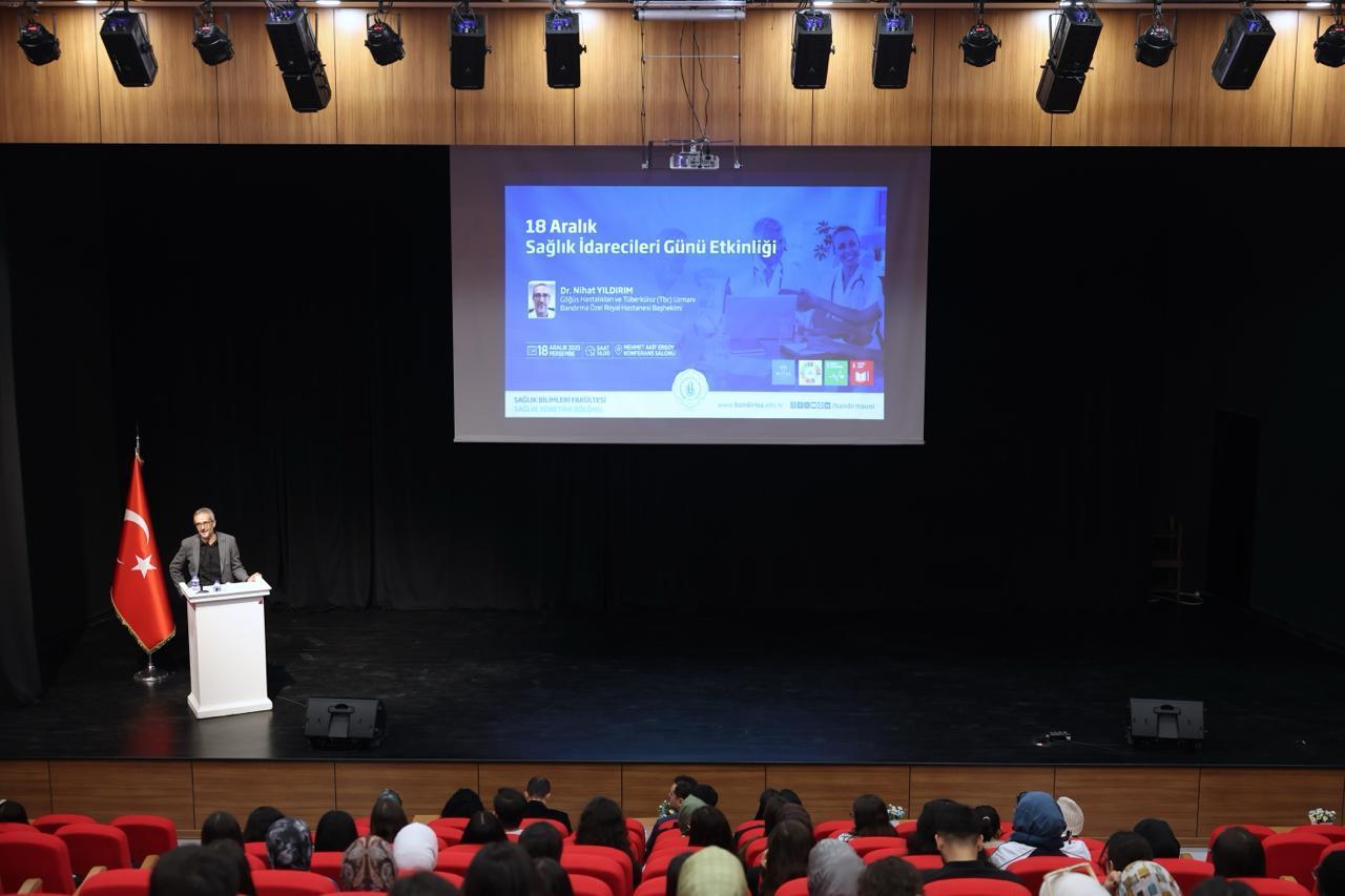 Programın davetli konuşmacısı Özel Bandırma Royal Hastanesi Başhekimi Uzm. Dr. Nihat Yıldırım oldu. Uzm. Dr. Yıldırım konuşmasında; sağlık hizmetlerinde dijitalleşme, elektronik sağlık kayıt sistemleri, veri temelli karar verme süreçleri ve yapay zekâ uygulamalarının sağlık yönetimine etkilerine ilişkin kapsamlı değerlendirmelerde bulundu. Teknolojinin sağlık idareciliğinde köklü bir dönüşüm yarattığını belirten Yıldırım, dijital sistemlerin hizmet kalitesini artırma, kaynakların etkin kullanımı ve hasta güvenliğinin güçlendirilmesi açısından sunduğu imkânlara dikkat çekti. Program, soru-cevap bölümünün ardından interaktif bir şekilde tamamlandı.