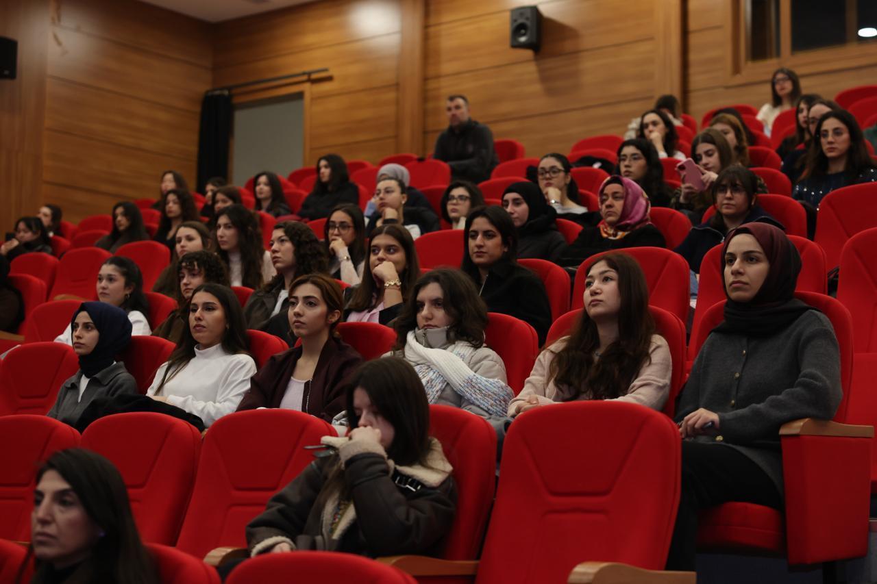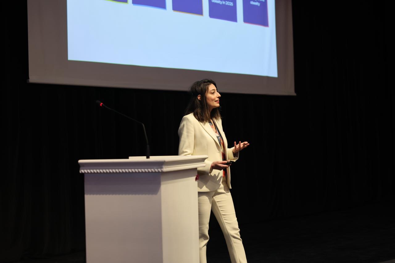 Etkinlikte konuşmacı olarak yer alan Beslenme ve Diyetetik Bölümümüz öğretim üyesi Dr. Öğr. Üyesi Kübra Damla Ekenci, bu yılın küresel mottosu olan “Harekete Geçmek İçin 8 Milyar Neden” teması kapsamında obezitenin bireysel bir sorun olmanın ötesinde küresel bir halk sağlığı sorunu olduğuna dikkat çekti. Ekenci sunumunda, obezitenin genetik, çevresel ve sosyoekonomik birçok faktörle ilişkili olduğu vurgulayarak erken yaşlardan itibaren önleyici yaklaşımların önemine değindi. ‘‘Obeziteyi anlamak, çözümün ilk adımıdır’’ mesajının öne çıktığı etkinlikte, önleyici yaklaşımların yaşamın erken dönemlerinden itibaren başlatılmasının ve toplum genelinde farkındalık oluşturulmasının önemi ifade edildi.