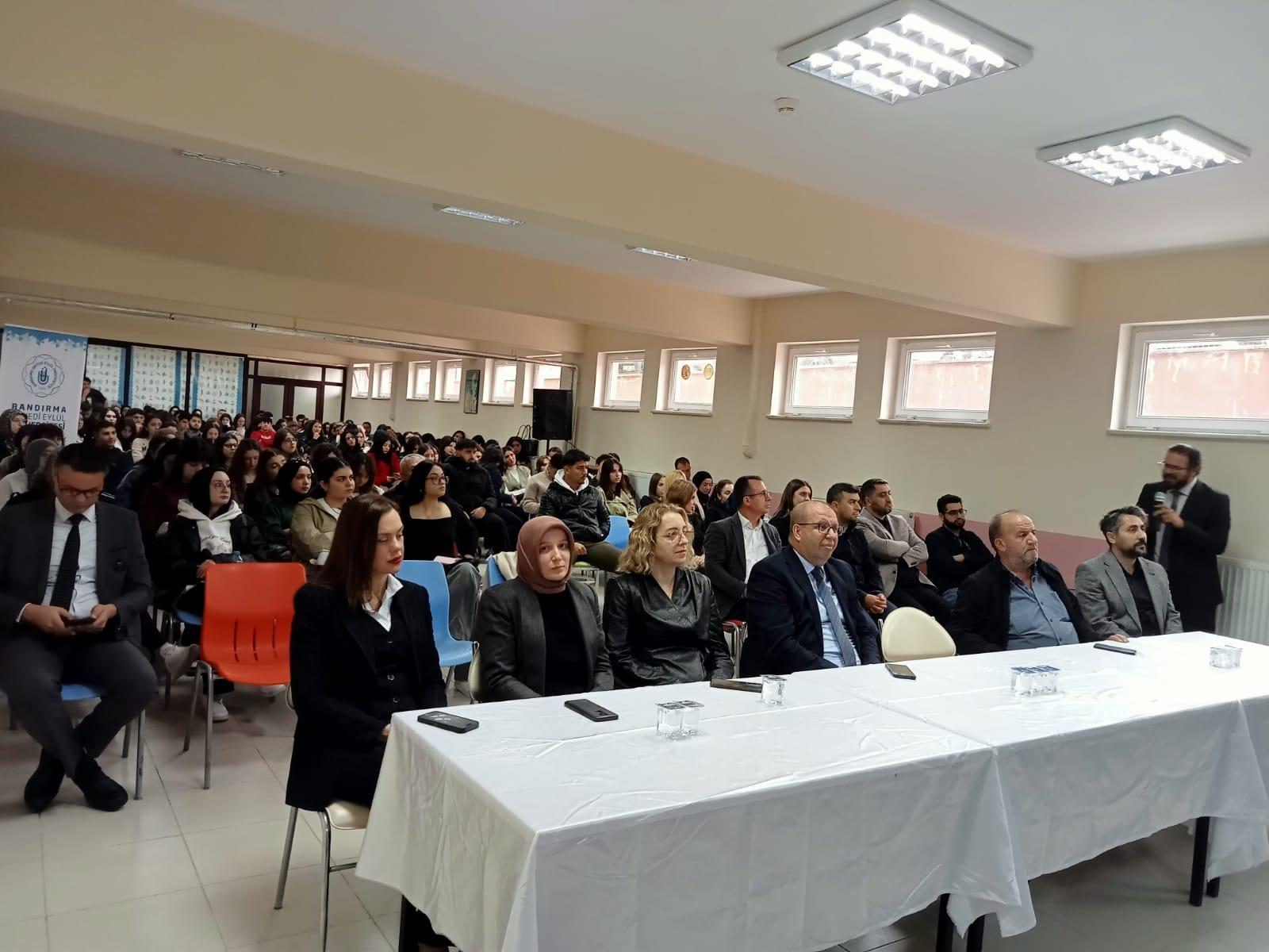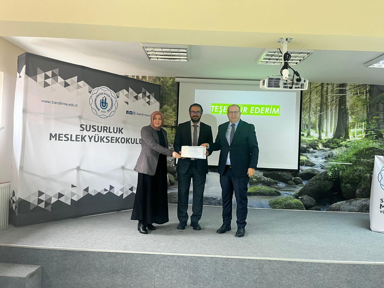 Yüksekokul Konferans Salonu’nda düzenlenen programa Susurluk Kaymakamı Turgut Gülen ve kıymetli eşi Meral Gülen, akademik ve idari personelimiz ile öğrencilerimiz katılım sağladı.