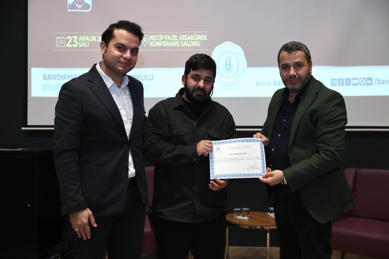 Bandırma Meslek Yüksekokulu Bilgisayar Teknolojisi Bölümü tarafından düzenlenen “Geleceğin Yazılımcısı Olmak: Teknoloji, Kariyer ve Fırsatlar” başlıklı söyleşi, 23 Aralık 2025 Salı günü saat 11.00’de, Necip Fazıl Kısakürek Konferans Salonu’nda başarıyla gerçekleştirildi.