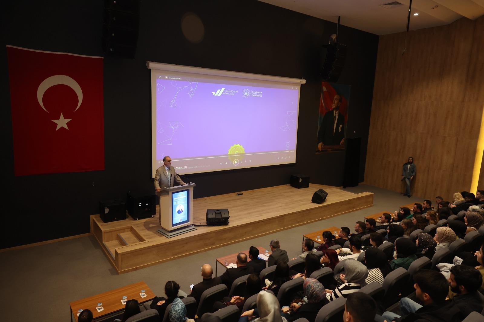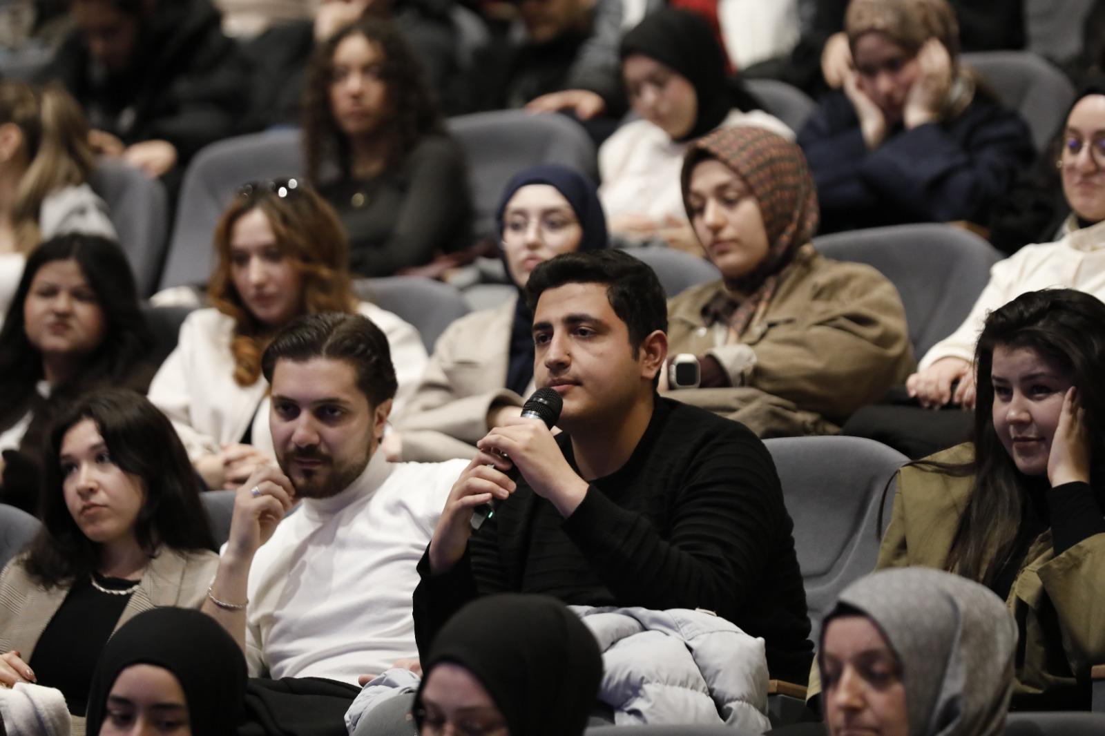 Üniversitemizde düzenli olarak gerçekleştirilen “Rektör-Öğrenci Buluşmaları” kapsamında Rektörümüz Prof. Dr. İsmail Boz; İlahiyat Fakültesi, İletişim Fakültesi ile Sanat, Tasarım ve Mimarlık Fakültesi öğrencilerimizle bir araya geldi. Prof. Dr. Aziz Sancar Konferans Salonu’nda gerçekleştirilen programa öğrencilerimiz yoğun ilgi gösterdi.