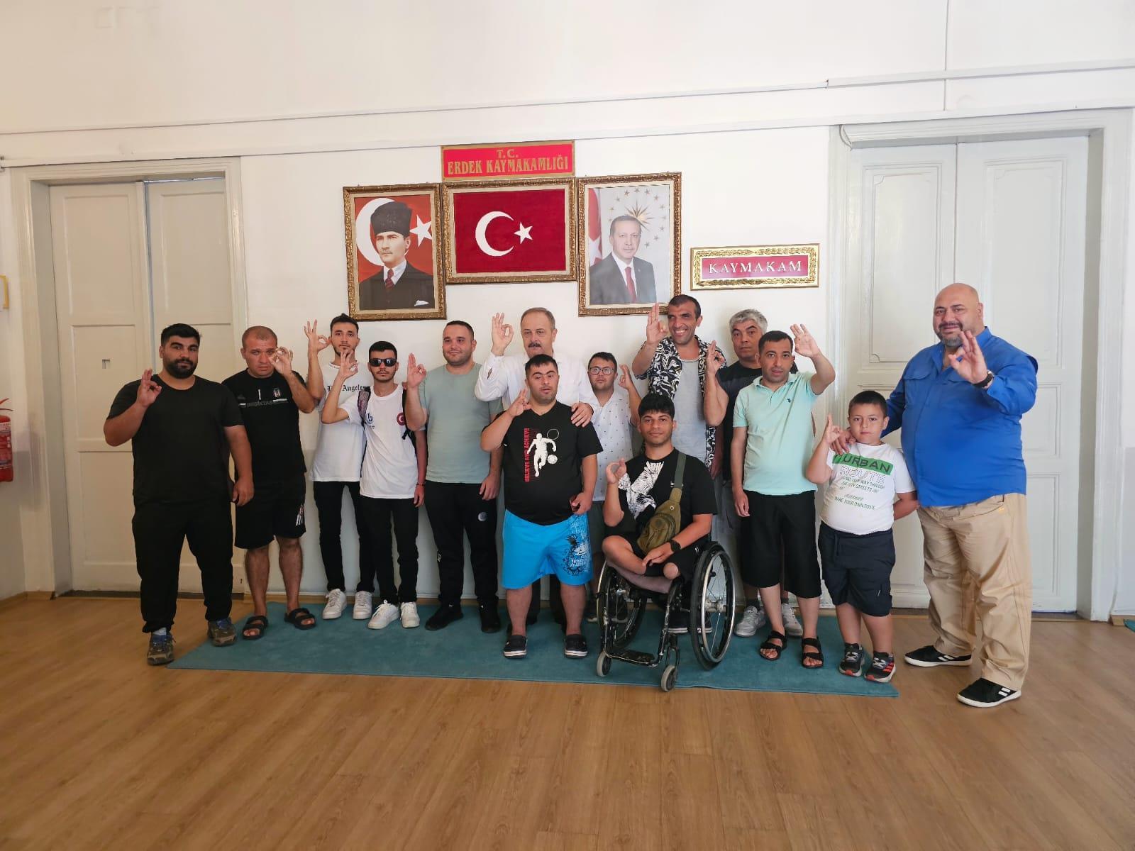 23-30 Ağustos 2025 tarihleri arasında devam edecek olan kampın açılışında engelli katılımcılar, Üniversitemiz Rektörü Prof. Dr. İsmail Boz’a, Erdek Kaymakamı Hasan Göç‘e, Rektör Yardımcımız Prof. Dr. Ebru Kaya Mutlu’ya, Eti Maden İşletmeleri Genel Müdürü Selçuk Ünsal’a, Erdek Liman Başkanı Onur Şimşek’e ve Üniversitemiz Denizcilik Meslek Yüksekokulu Müdürü Prof. Dr. Celil Aydın'a kendi hazırladıkları tabloları takdim ederek teşekkürlerini sundular.
