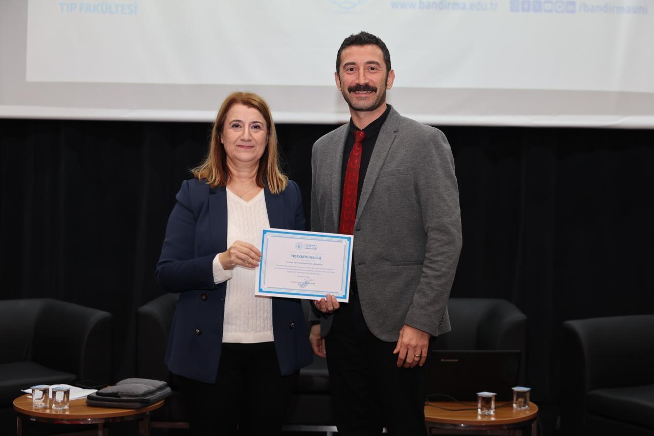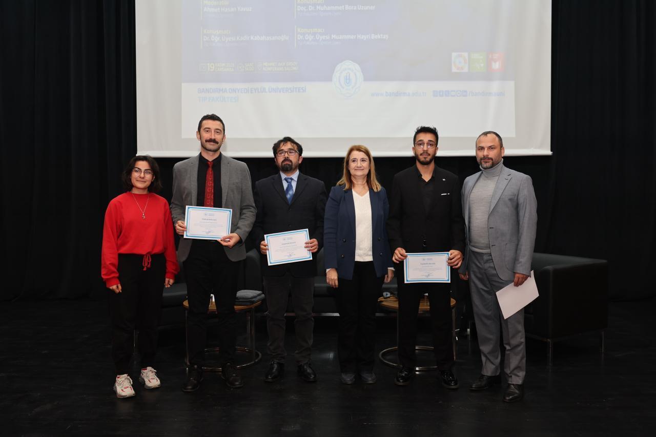 Panelin sonunda Tıp Fakültesi Dekanımız Prof. Dr. Ayşe Güldem Kilciler tarafından konuşmacılara teşekkür belgeleri takdim edildi. Etkinlik toplu fotoğraf çekimiyle sona erdi.